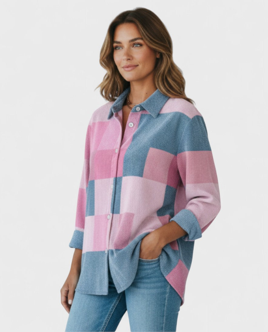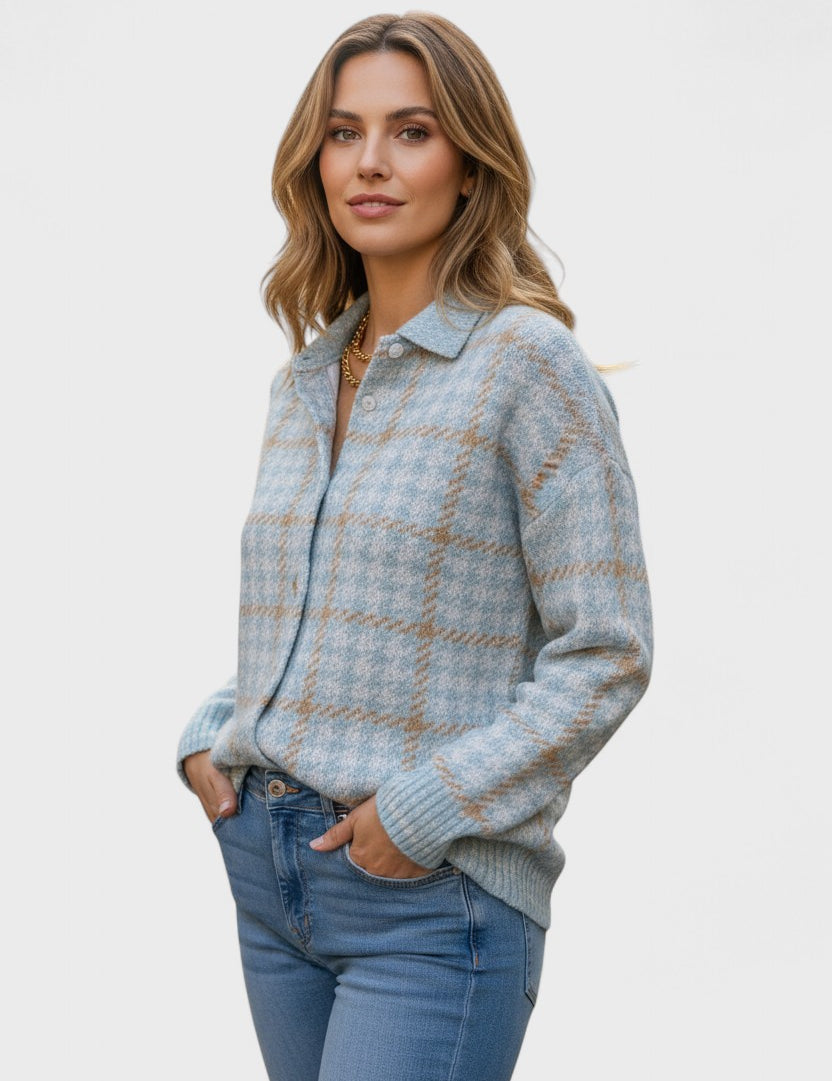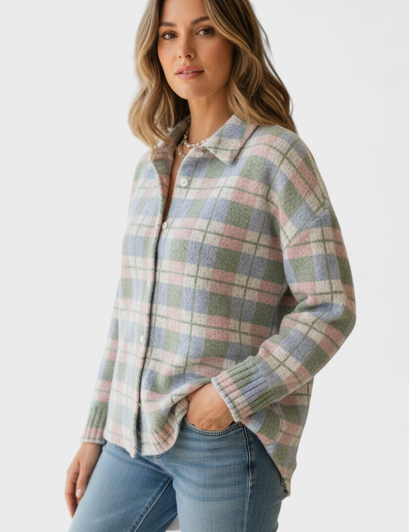 Lena – Blusa de malha xadrez em frescas tonalidades pastel
