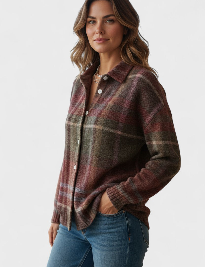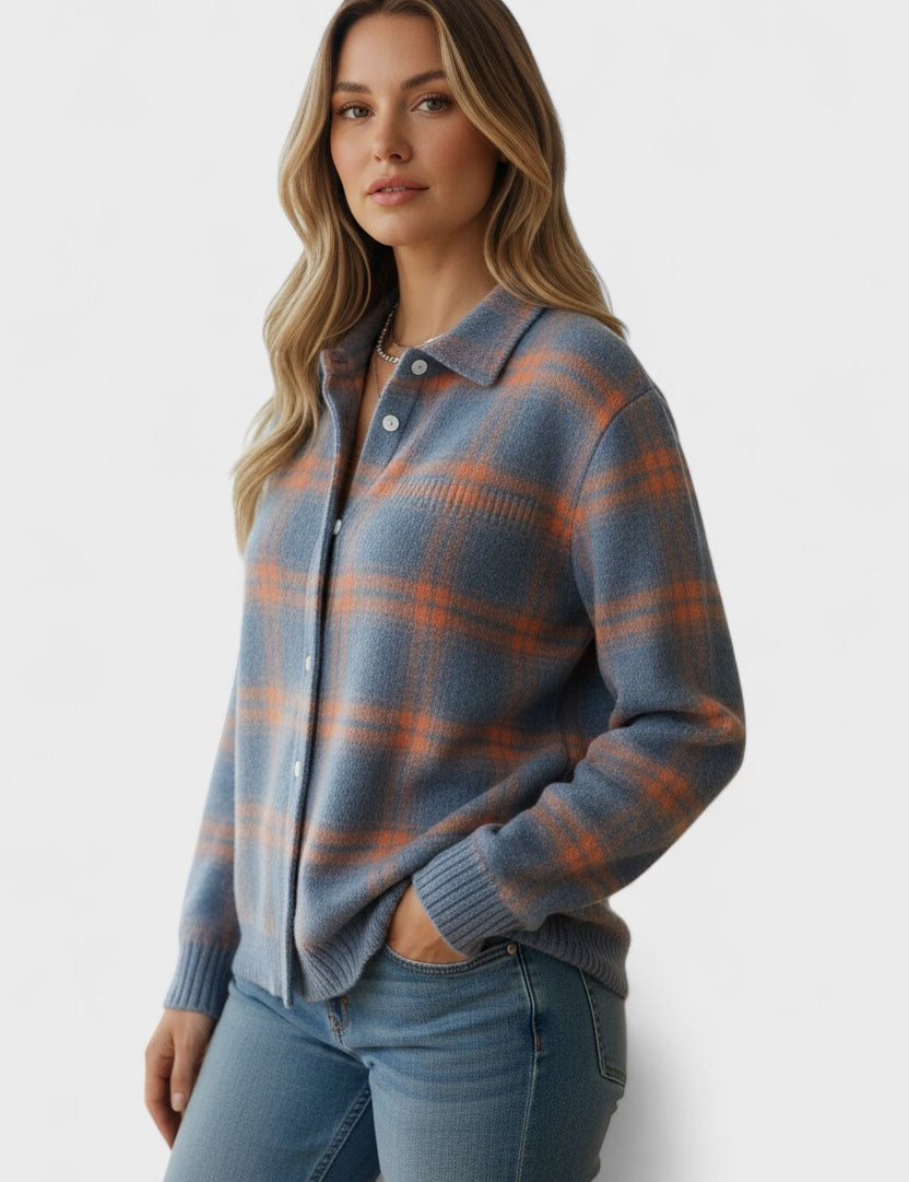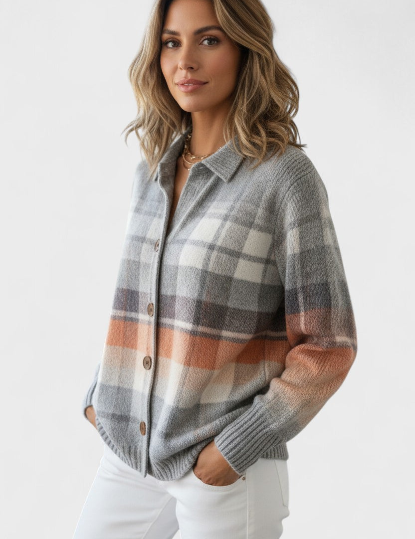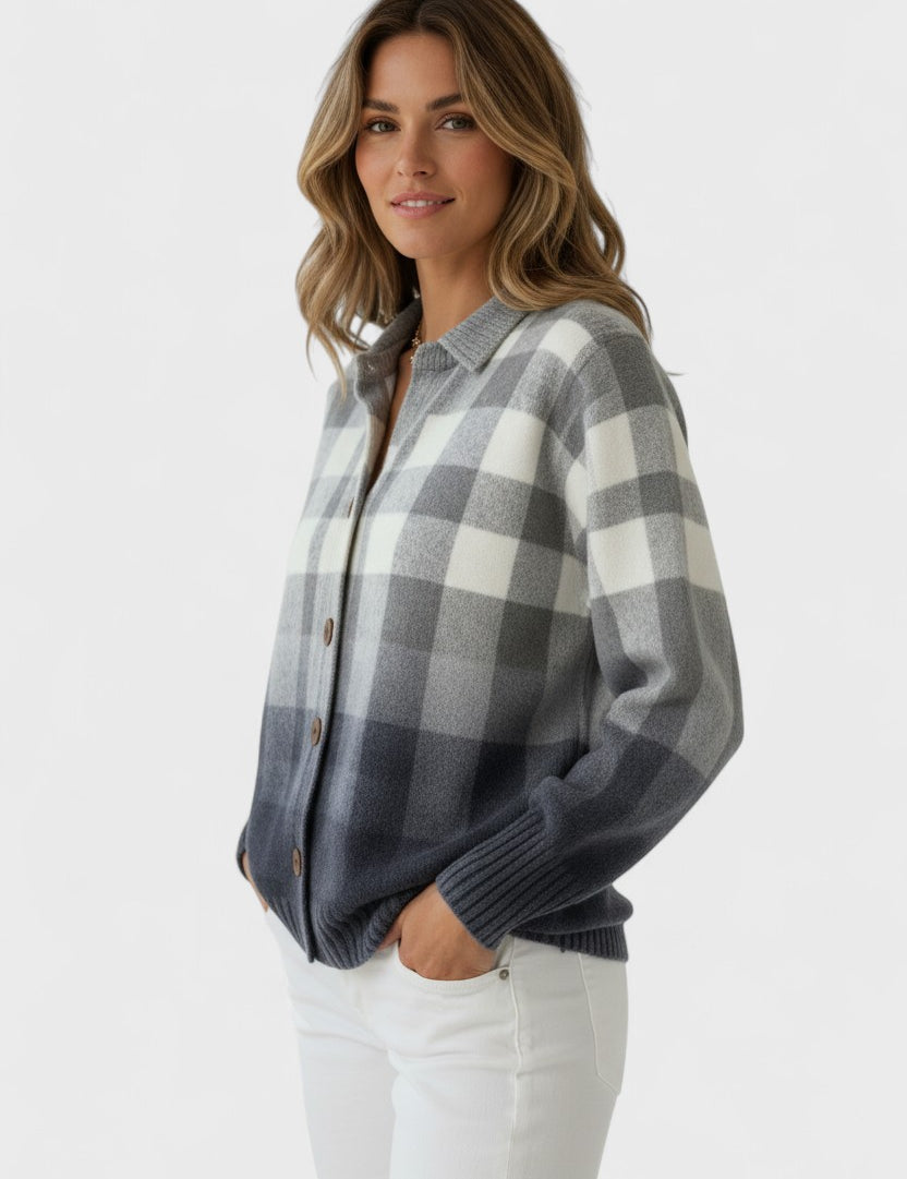 Lena – Blusa de malha xadrez em frescas tonalidades pastel