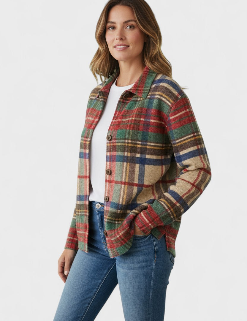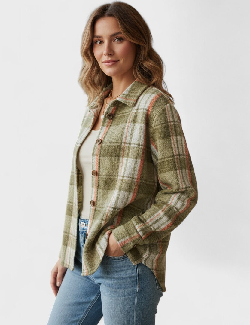 Elina – Blusa quadriculada em tons vibrantes de verde