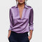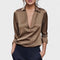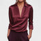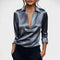Acabamento Luxuoso em Cetim: Confeccionada em cetim de alta qualidade, a Blusa Premium Decote em V oferece um brilho suave e elegante que eleva instantaneamente qualquer look. Sua textura sedosa é macia ao toque, garantindo conforto durante todo o dia.