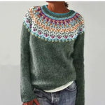 • Estiloso e funcional: O padrão escandinavo multicolorido dá imediatamente caráter a qualquer outfit, enquanto o sweater se mantém confortável para o uso diário.