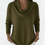 Gola Drapeada Graciosa – Decote suave e dobrado que valoriza e adiciona um toque refinado