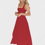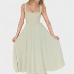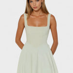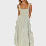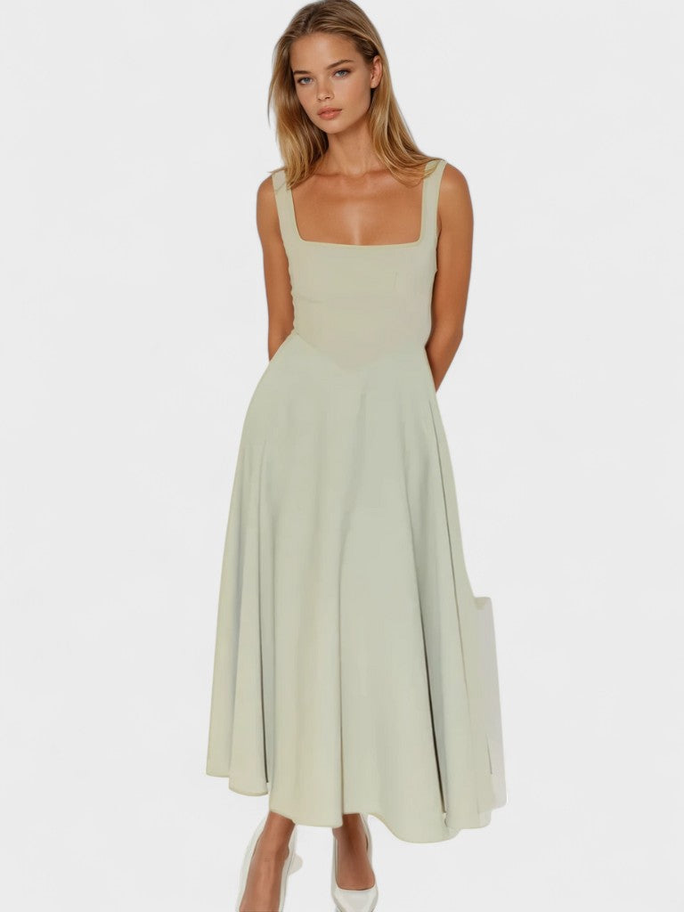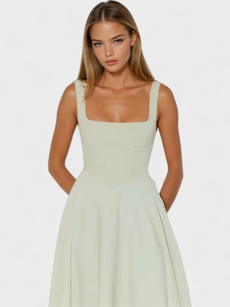Deixe-se envolver pela harmonia deste vestido maxi em verde pastel, onde o decote quadrado e o corpete estruturado realçam a elegância natural, enquanto a saia fluida cria um movimento leve a cada passo. As alças largas conferem segurança ao apoio e elongam a silhueta, tornando esta peça perfeita para momentos especiais ou para elevar o seu dia a dia com um toque de sofisticação discreta.