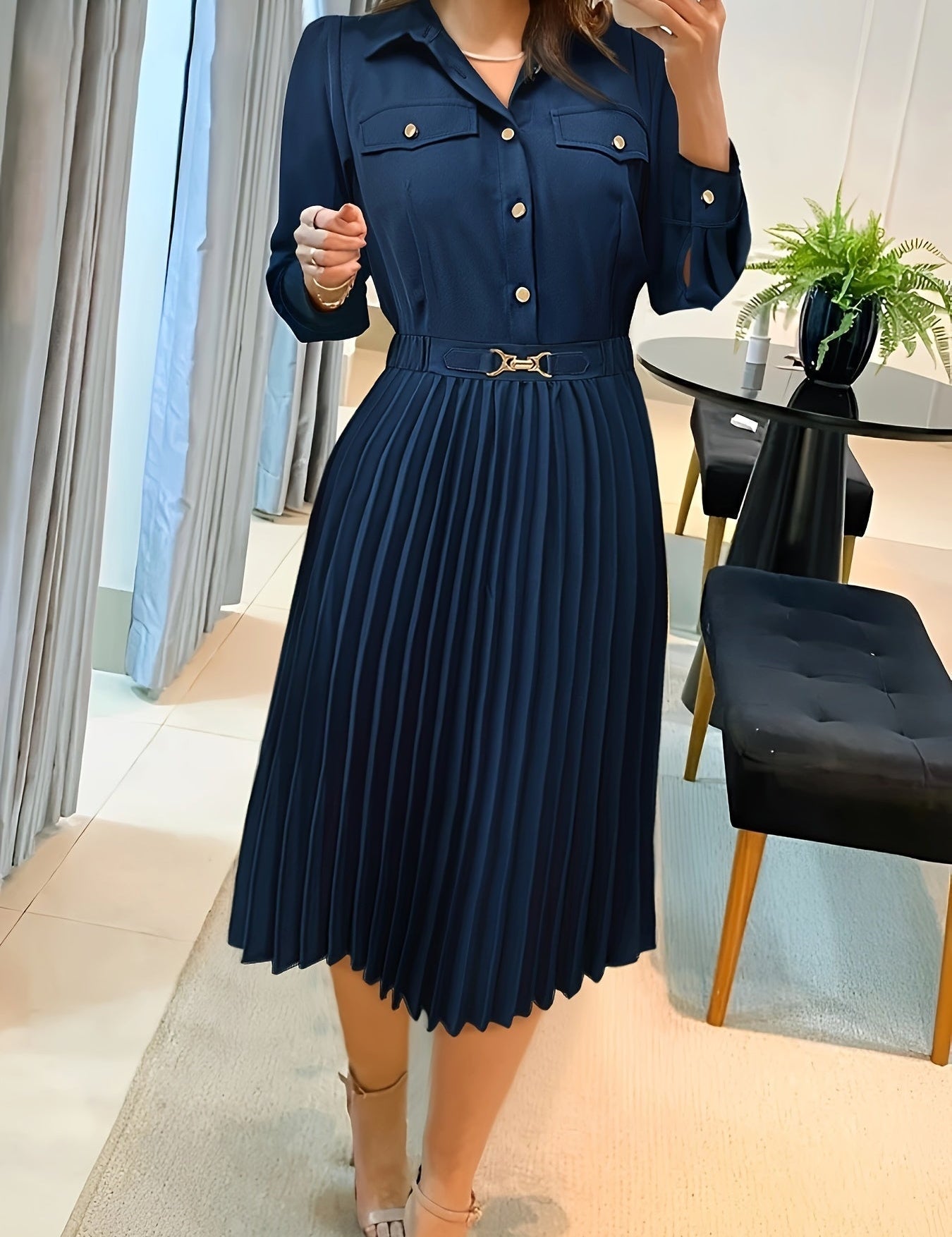 Ana - Vestido Midi Elegante com Cintura Laçada