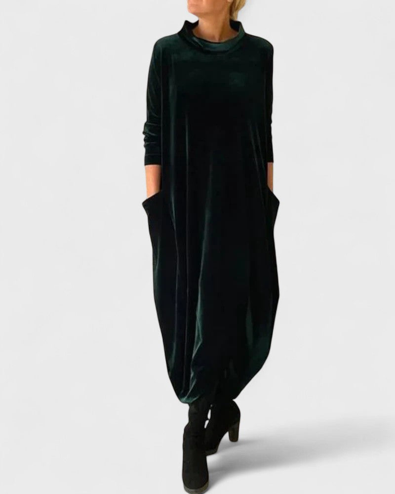 Elegante Vestido de Inverno em Veludo com Bolsos