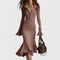 O vestido elegante Laura foi pensado para valorizar a figura com um toque de classe intemporal. Confeccionado em um tecido macio e envolvente, segue harmoniosamente as linhas do corpo, oferecendo conforto e estilo em uma única peça. O design com fecho frontal e a base ligeiramente evasé trazem movimento e uma aura sofisticada, perfeita para qualquer ocasião — do dia à noite.