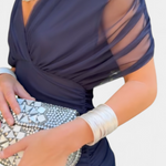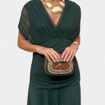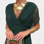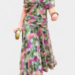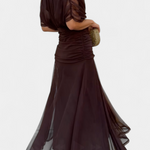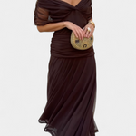 Este vestido elegante apresenta um decote off-the-shoulder com tecido delicadamente drapeado que cria uma silhueta graciosa e feminina. O corpete franzido realça as curvas naturais, enquanto a saia fluida adiciona movimento suave e charme. Projetado para valorizar e impressionar, é perfeito para ocasiões especiais onde a sofisticação e o estilo atemporal estão em destaque.
