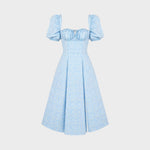 Este vestido midi delicado e manga bufante é a escolha perfeita para quem procura um look romântico e fresco. O corte com decote quadrado realça o colo de forma subtil, enquanto a fenda frontal acrescenta um toque de sensualidade sem perder a leveza. Ideal para dias de sol, passeios ou eventos casuais, combina charme e conforto com um toque vintage irresistível.