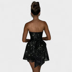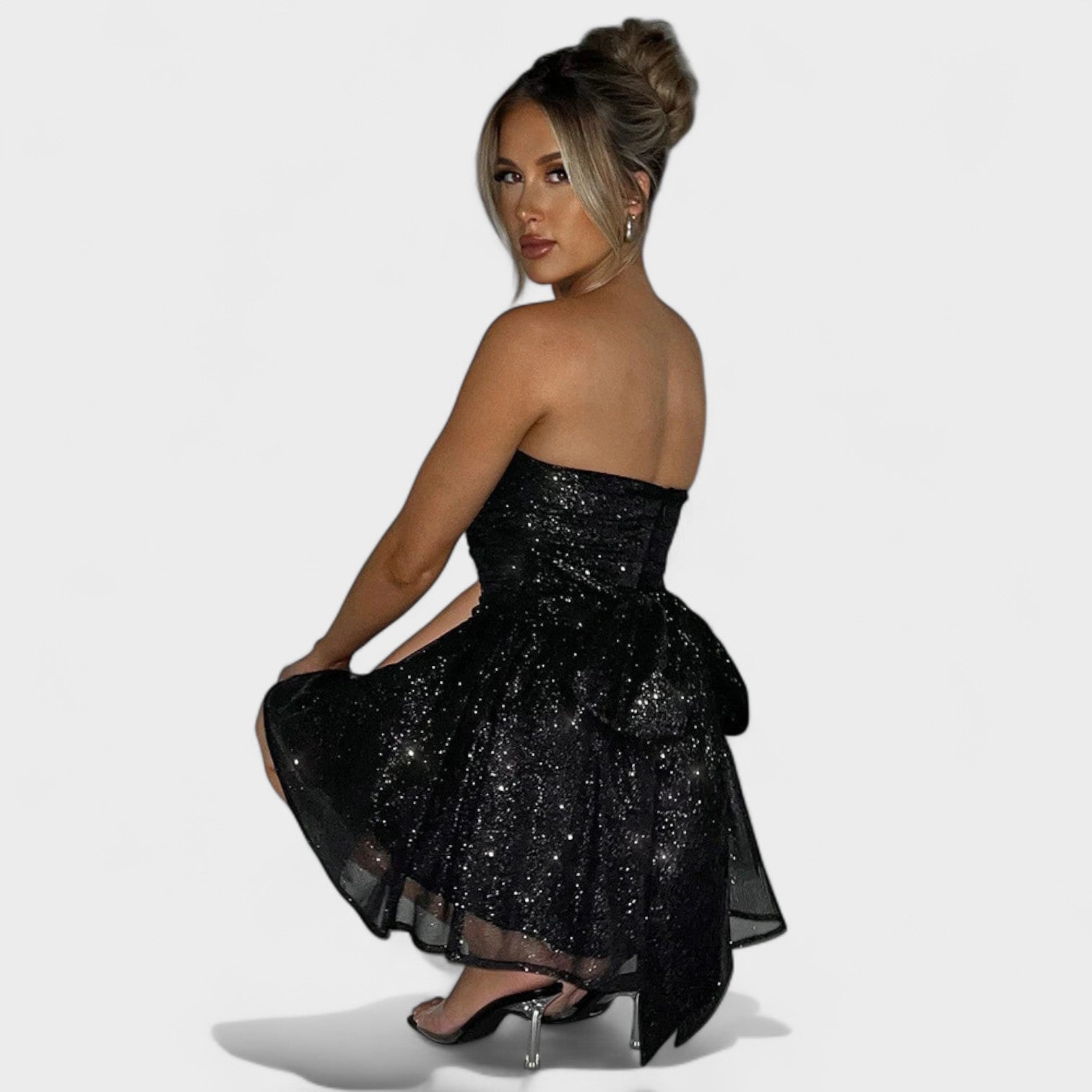 Com um toque de conto de fadas e a sensualidade no ponto certo, este mini vestido cai-cai foi feito para brilhar. A saia rodada em tecido leve oferece movimento e leveza, enquanto a parte superior estruturada realça a silhueta com elegância. Perfeito para festas, jantares ou ocasiões especiais em que queres deixar a tua marca.