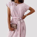 Este vestido elegante de riscas traz o equilíbrio perfeito entre modernidade e conforto. Seu design fluido e a cintura marcada com faixa proporcionam uma silhueta suave e feminina, ideal para qualquer ocasião. Seja para um dia de trabalho ou um evento casual, o vestido é uma escolha versátil e sofisticada. Com um tecido leve e respirável, você vai se sentir confiante e confortável durante todo o dia.