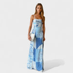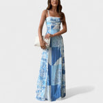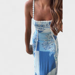 Este vestido comprido com padrão em tons de azul é a definição de frescura e elegância. Com um design inspirado nos azulejos portugueses e na leveza das paisagens costeiras, ele combina romanticismo e sofisticação com um toque boho-chic. As alças finas com detalhe em renda e o corte fluido valorizam a silhueta, tornando-o perfeito para dias de sol, festas ao ar livre ou jantares à beira-mar.