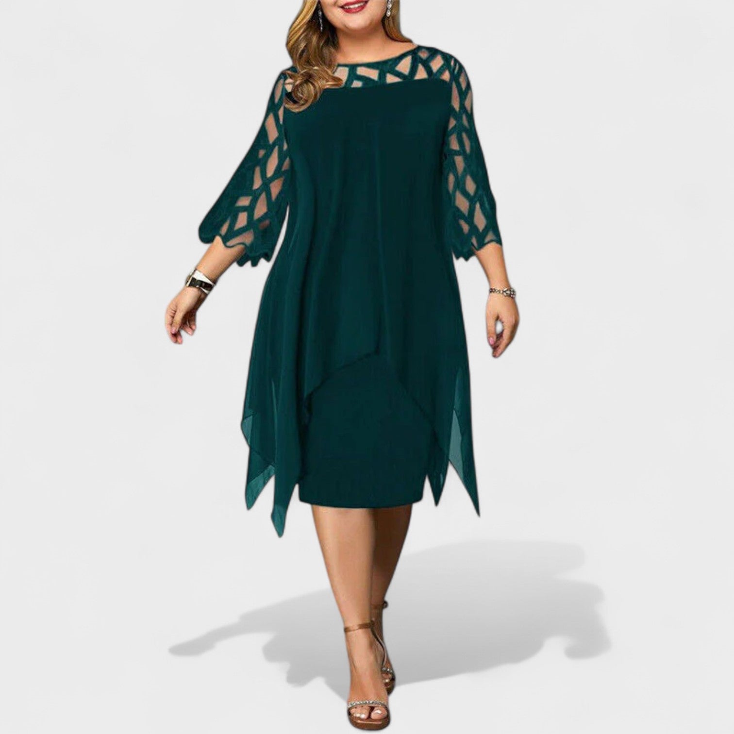 Este vestido traz um equilíbrio perfeito entre elegância e originalidade. Com sobreposição fluida, acabamento assimétrico e mangas com recortes sofisticados, ele oferece um visual marcante e cheio de personalidade. Ideal para ocasiões especiais, é a escolha certa para quem busca estilo aliado ao conforto em cada curva.