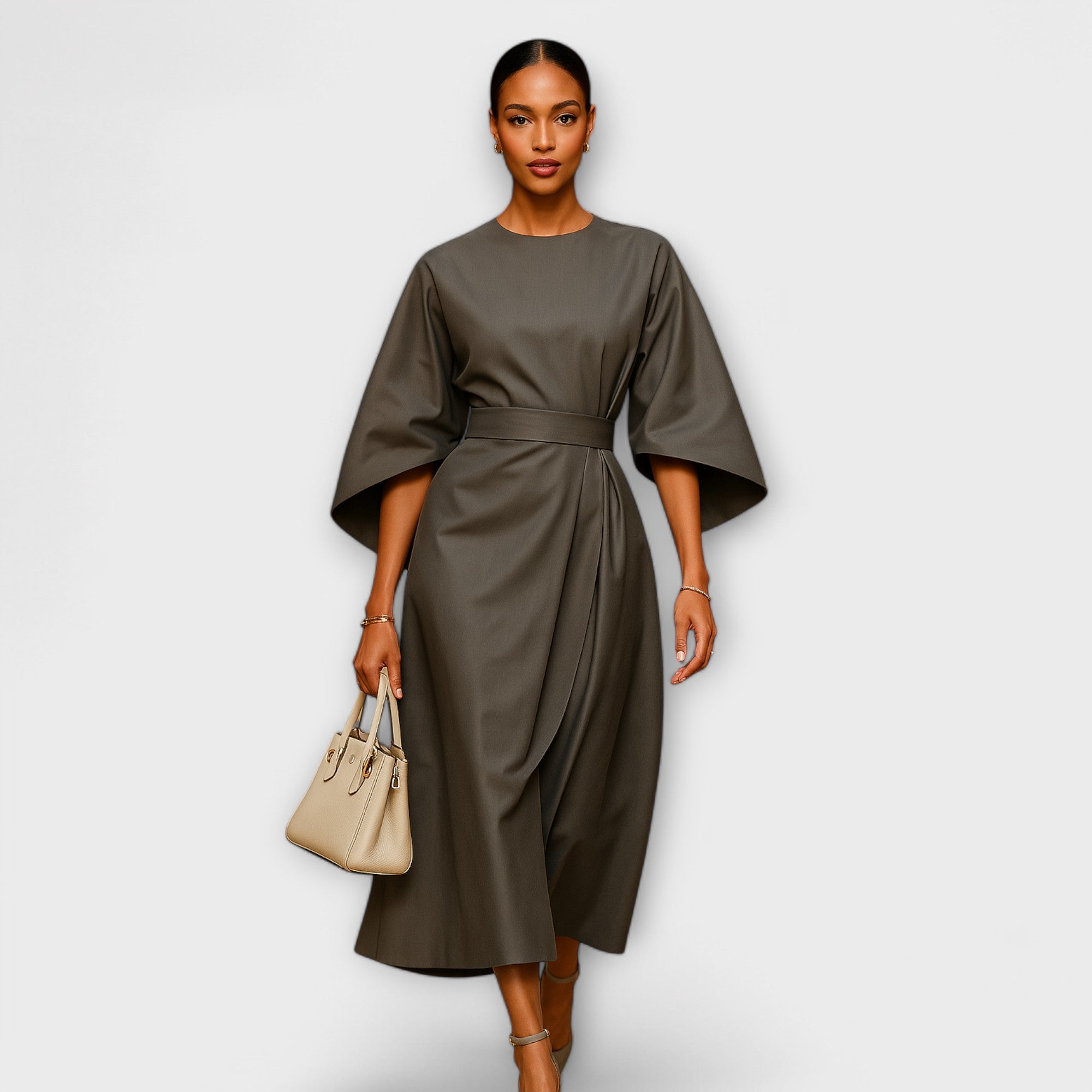 Sara - Vestido elegante com mangas em forma de lanterna e cinto