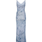 Este elegante vestido longo de renda floral combina sofisticação e feminilidade em um design encantador. Com um corte ajustado que valoriza a silhueta, alças finas delicadas e um decote suave, ele proporciona um visual romântico e refinado. O tecido leve e fluido oferece conforto e movimento, tornando-o ideal para diversas ocasiões, desde eventos diurnos até festas mais sofisticadas.