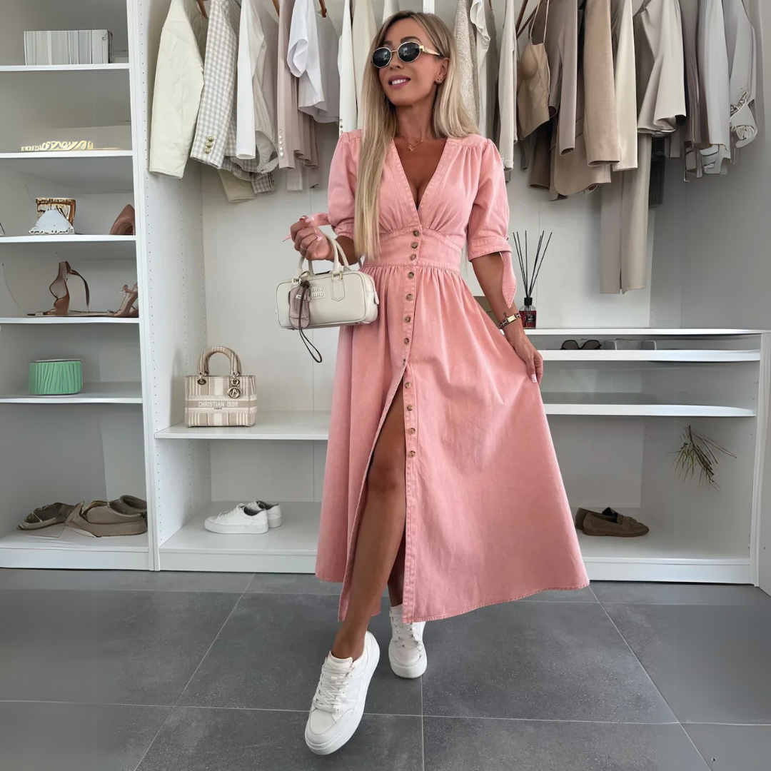 Ana - Vestido Midi Elegante com Cintura Laçada