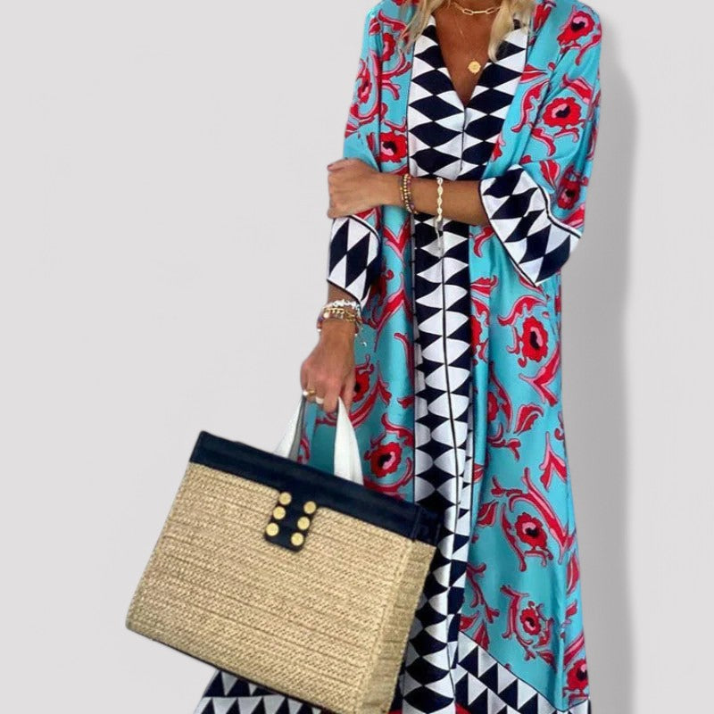 Júlia - Vestido de rede com padrão leopardo e mangas flare