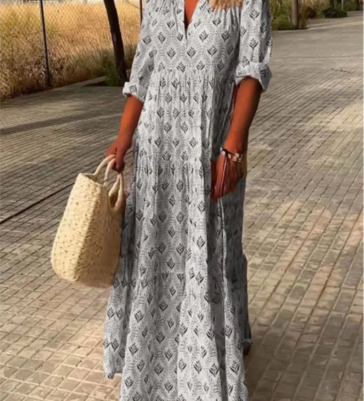 Sílvia - Vestido Estampado para uma Elegância sem Esforço