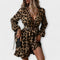 O vestido é feito de um material leve, o que o torna ideal para a primavera. As mangas compridas e o decote em V criam uma silhueta lisonjeira, enquanto os folhos na bainha dão ao vestido um aspeto divertido mas sofisticado. O cinto com atilhos incluído realça a cintura e permite-lhe ajustar o corte como desejar. Quer seja para uma ocasião festiva ou simplesmente para apimentar o seu guarda-roupa do dia a dia, este vestido de leopardo é uma escolha apelativa que exala estilo e confiança.