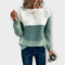 Descubra o estilo único de Clara – um suéter com patchwork de três peças que combina elegância e conforto.