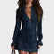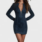 Rachel – Mini vestido em camurça azul com renda