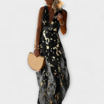 Vestido Elegante com Decote em V e Brilhantes Lantejoulas